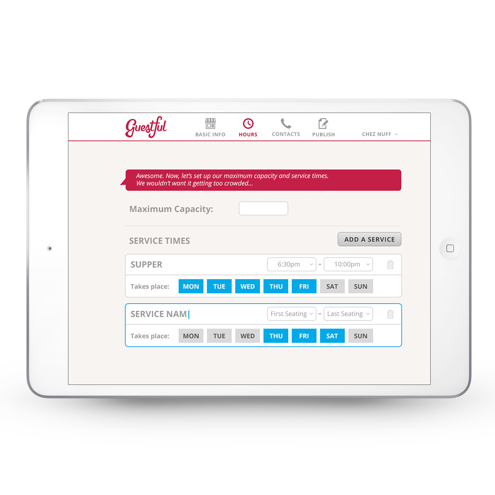 for restaurants, as well as the onboarding system and landing page.